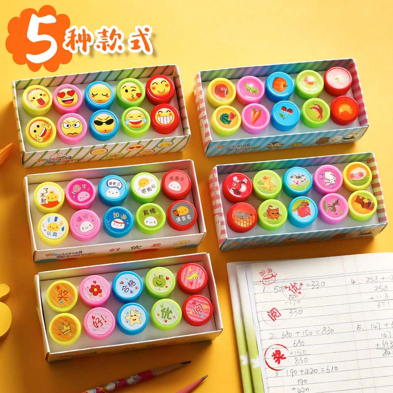 咔巴熊咔巴熊儿童小印章盖章卡通可爱奖励表扬你真棒幼儿园老师宝宝鼓励小学生教师用小朋友防水动物水果图案表情包KBX-1013