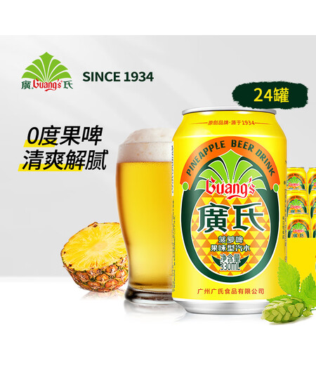 广氏无酒精菠萝啤饮料果啤麦芽汁菠萝味汽水330ml*24罐