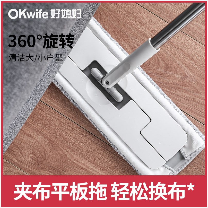 好媳妇(okaywife) 家用拖布擦木地板托把瓷砖夹毛巾墩布平拖地拖 两夹夹平布拖(2块布)AGW4443