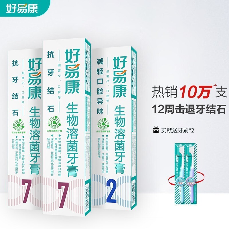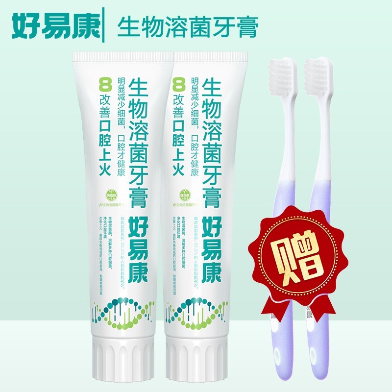 好易康生物溶菌酶1号牙膏去黄去牙渍改善牙龈出血口臭牙周炎牙膏120g【买2送2支牙刷】