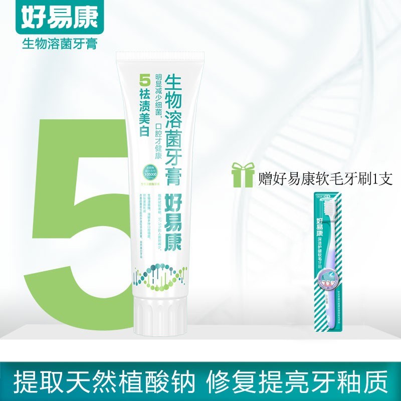 好易康生物溶菌酶牙膏5号男女专用亮白牙齿去黄黑去烟渍茶渍牙垢牙渍120g【送1支牙刷】