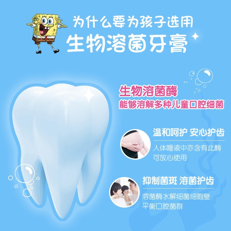 海绵宝宝好易康生物溶菌酶儿童牙膏6-12岁换牙期去牙菌斑防蛀牙【葡萄味】