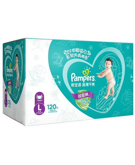 帮宝适绿帮拉拉裤L120片(9-14kg)尿不湿尿裤成长裤超薄透气