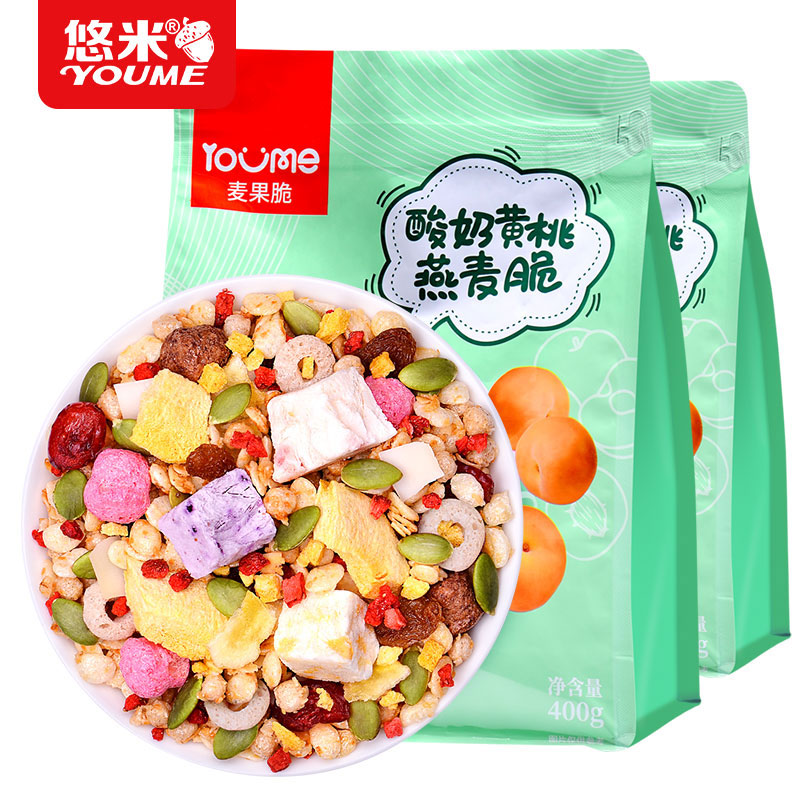 悠米 酸奶块黄桃果粒坚果燕麦脆即食燕麦片 代餐麦皮营养早餐干吃零食燕麦脆400g*2包