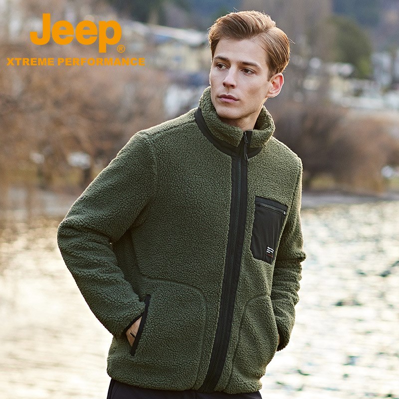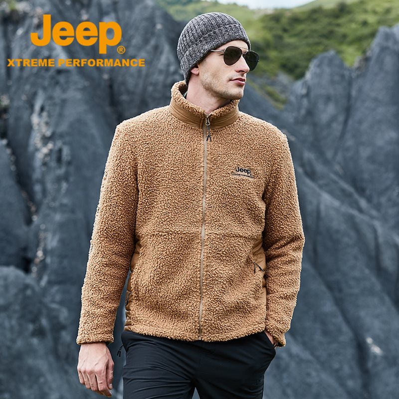 JEEP 秋冬季保暖抓绒立领拉链休闲夹克开衫双面摇粒绒男上衣服J132094288