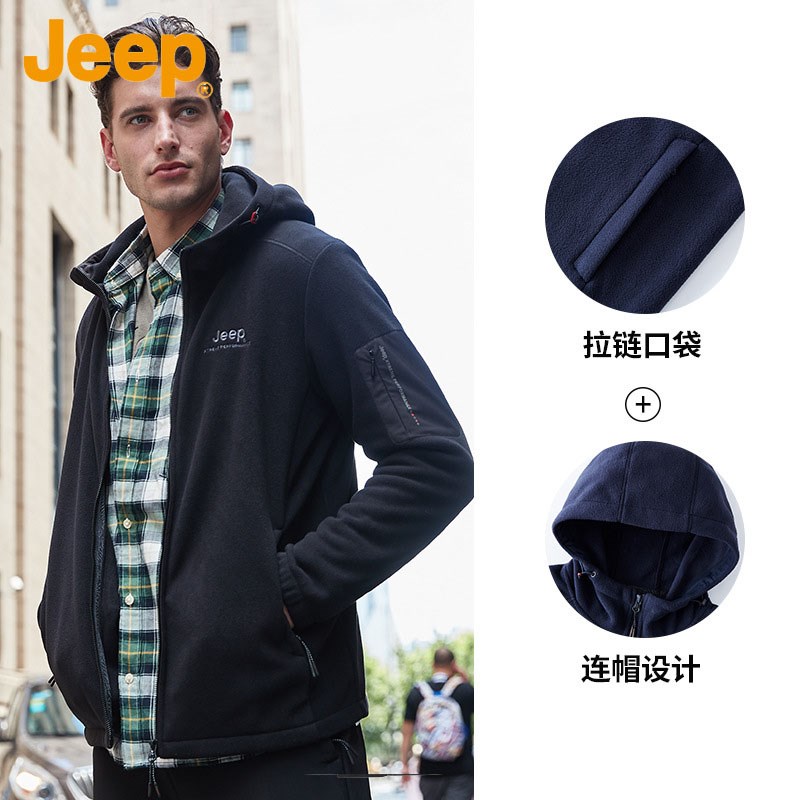 JEEP 户外秋冬抓绒衣户外运动衣摇粒绒卫衣连帽休闲加厚外套潮J032094298