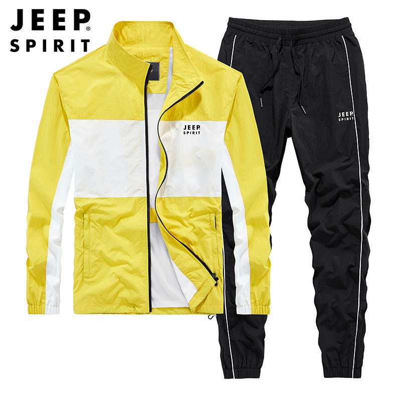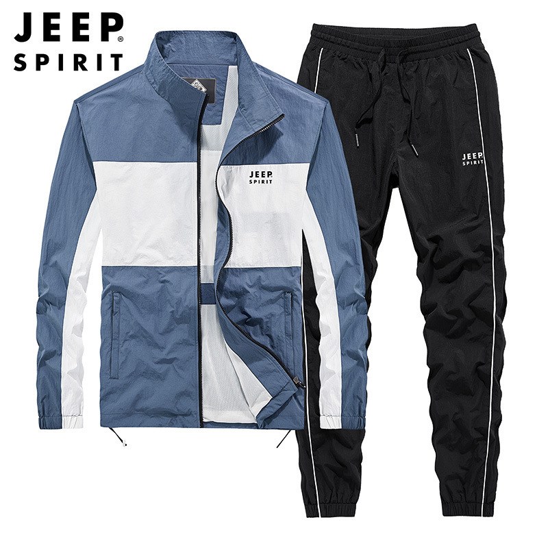 JEEP SPIRIT春季拉链侧缝插袋拼色休闲青年拼接立领夹克套装YSF0673-0691