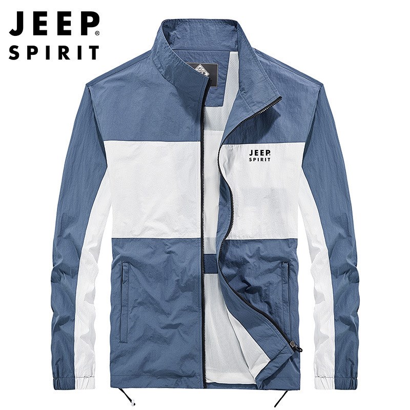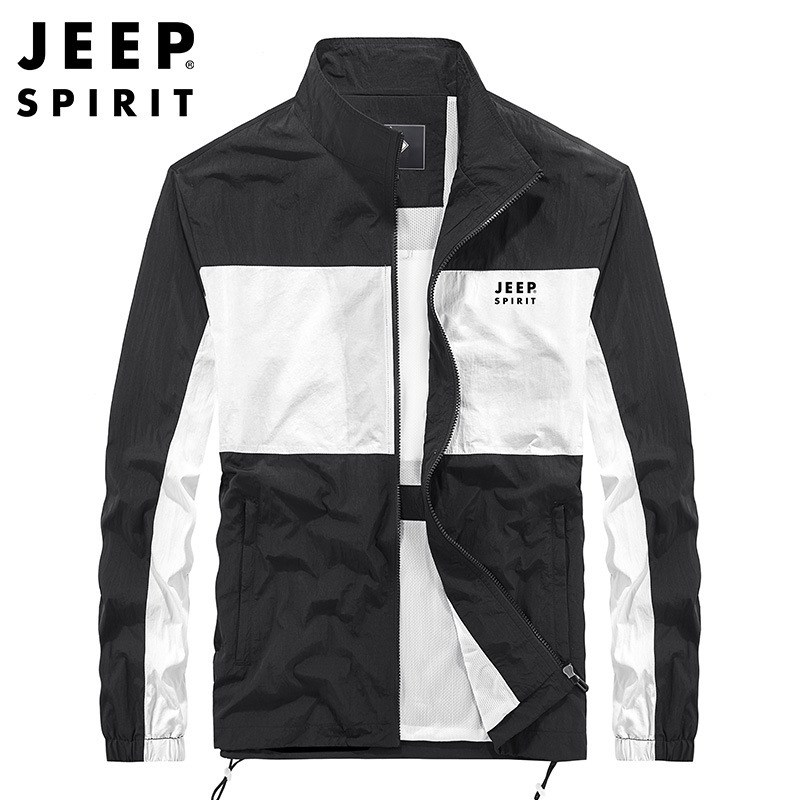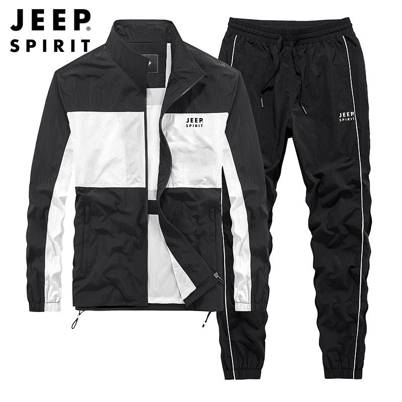 JEEP SPIRIT春季拉链侧缝插袋拼色休闲青年拼接立领夹克套装YSF0673-0690