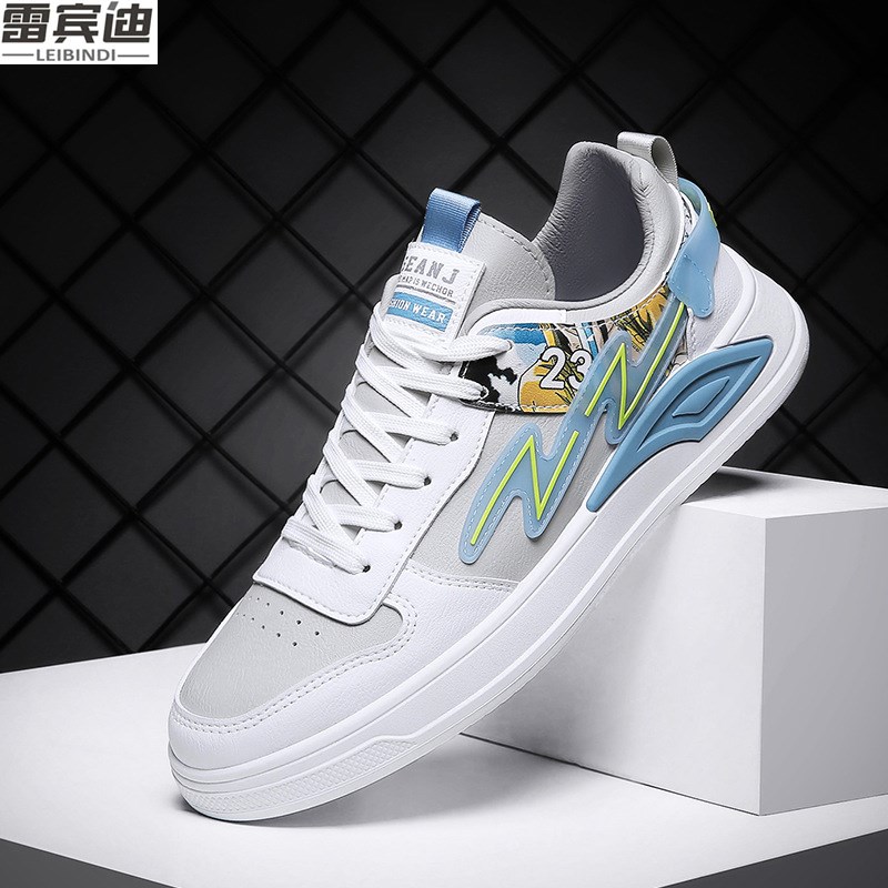 LEIBIDI/雷宾迪休闲男鞋厚底涂鸦拼色板鞋皮革拼接小白鞋YG-RH281