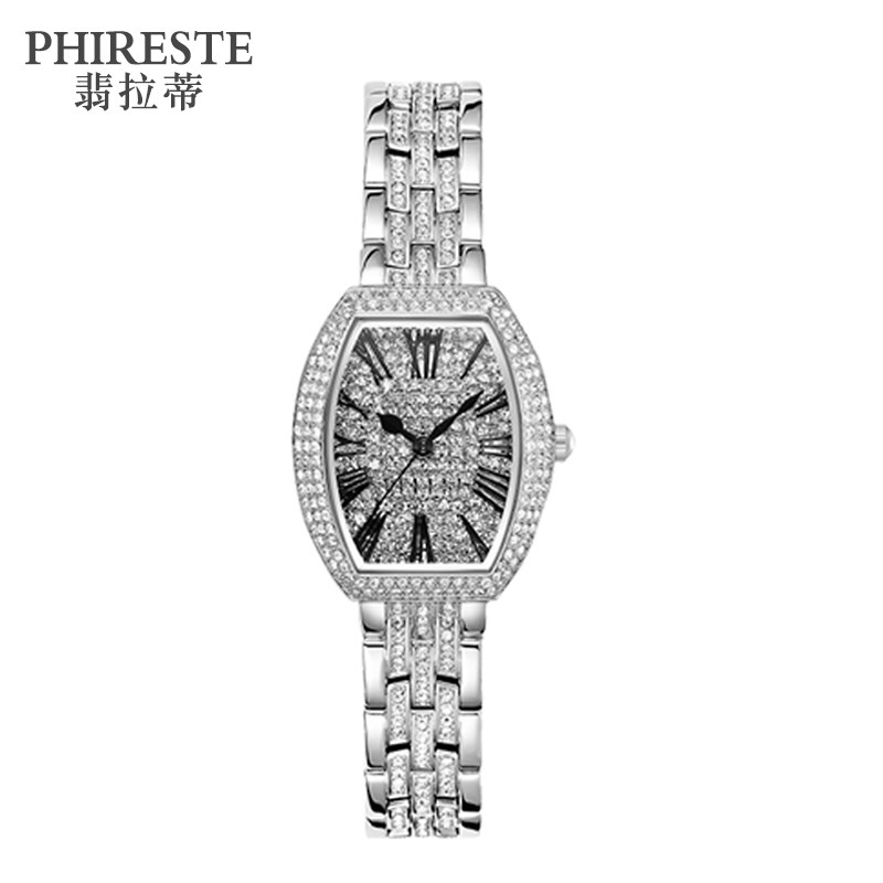 PHIRESTE翡拉蒂 瑞士奢华钻表(铜石面粘施华洛水晶钻+罗马字印黑色)女士石英表PH8131A