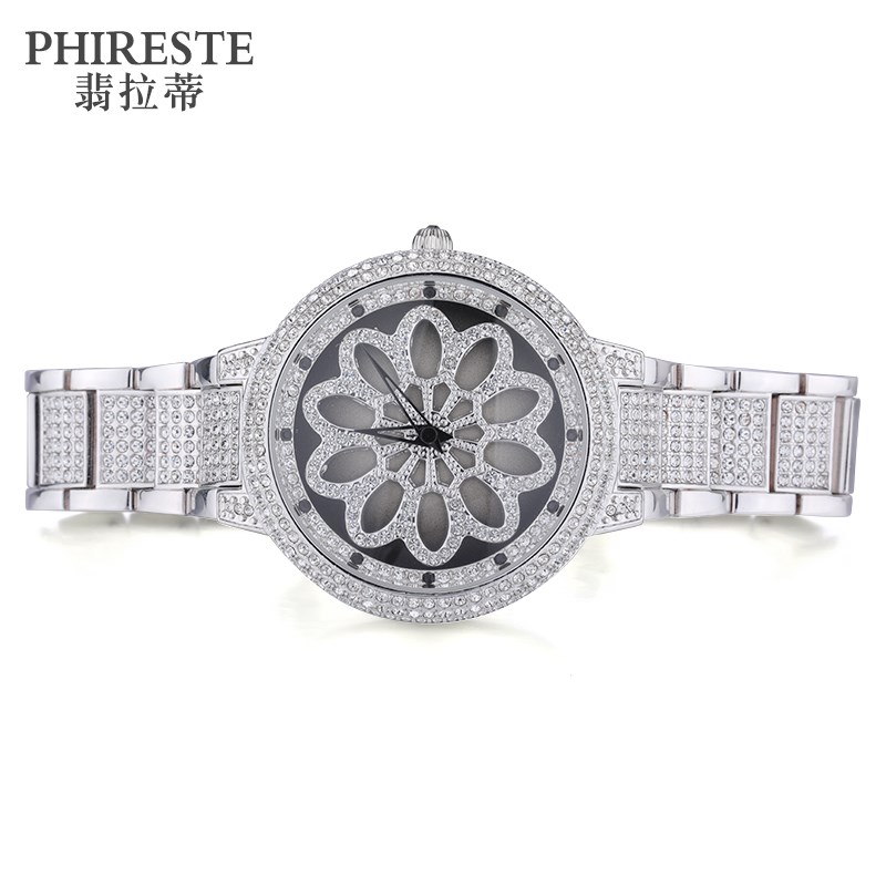 PHIRESTE翡拉蒂 瑞士奢华钻表(转动铜石面粘施华洛水晶钻+黑色阴阳纹金属面)女士石英钻表PH8132A