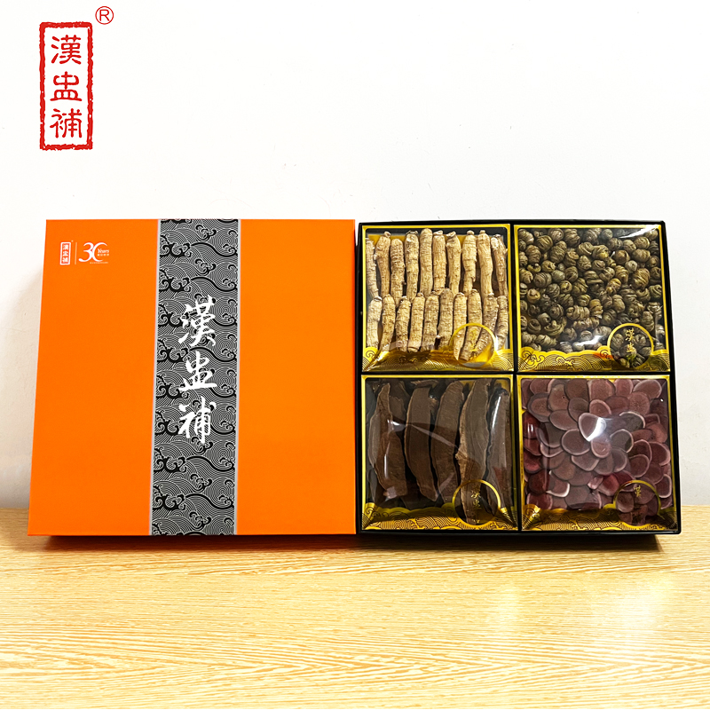 汉盅补 养生正方 新四宝-礼盒装 240克 (芝片35g、石斛80g、西洋参条100g、鹿茸片25g)(新旧包装随机发货)