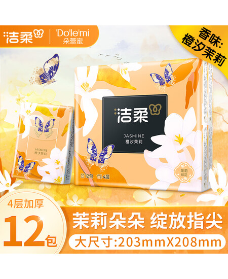 洁柔手帕纸橙汐茉莉4层7片*12包纸巾小包便携装新老品交替发货 高级香
