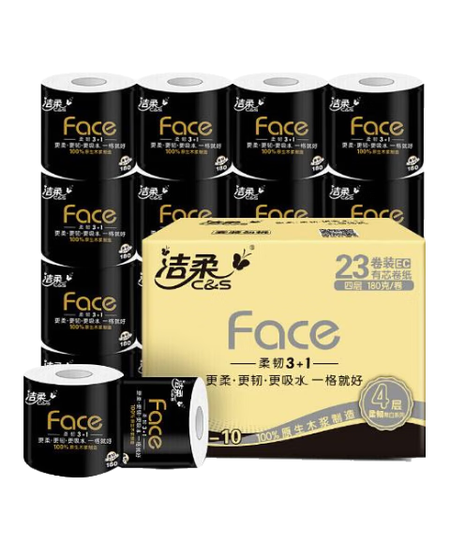 洁柔有芯卷纸 黑Face4层180克*23卷 厚韧耐用 卫生纸卷筒纸纸巾整箱