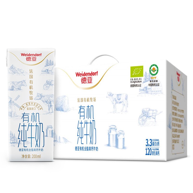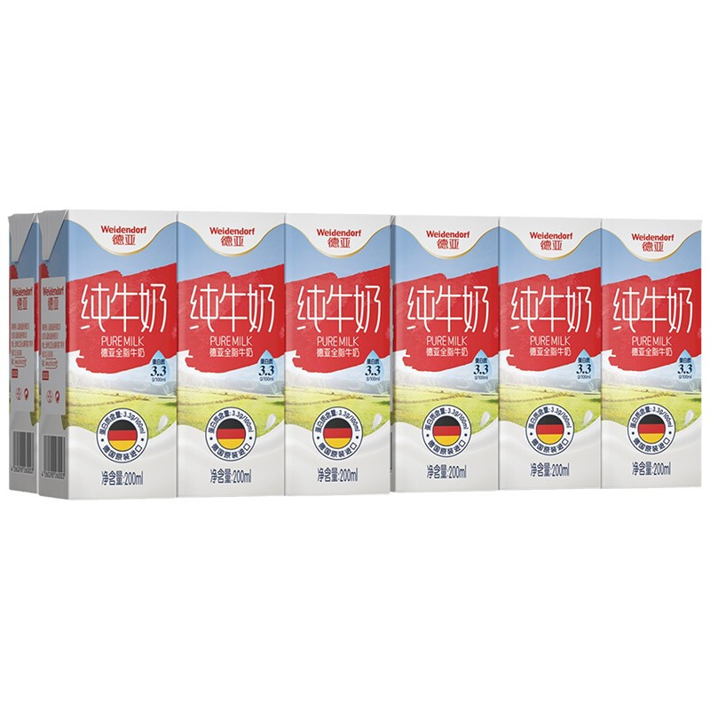 【进口】德国牛奶 营养早餐奶 德亚全脂牛奶纯牛奶200ml*10盒整箱装