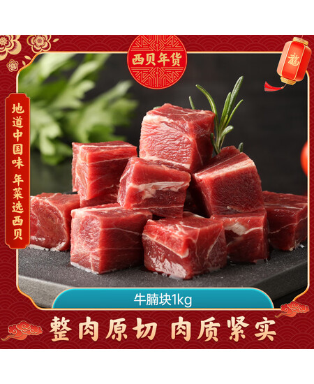 西贝莜面村内蒙古牛腩块1kg 草原新鲜牛肉 火锅烤肉烧烤食材 生鲜冷冻牛肉
