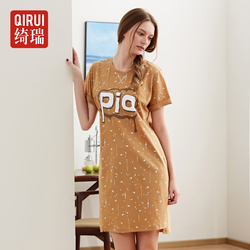 绮瑞绮瑞家居服女夏天短袖纯棉睡裙女针织全棉印花可爱睡衣女裙薄款季QI63013