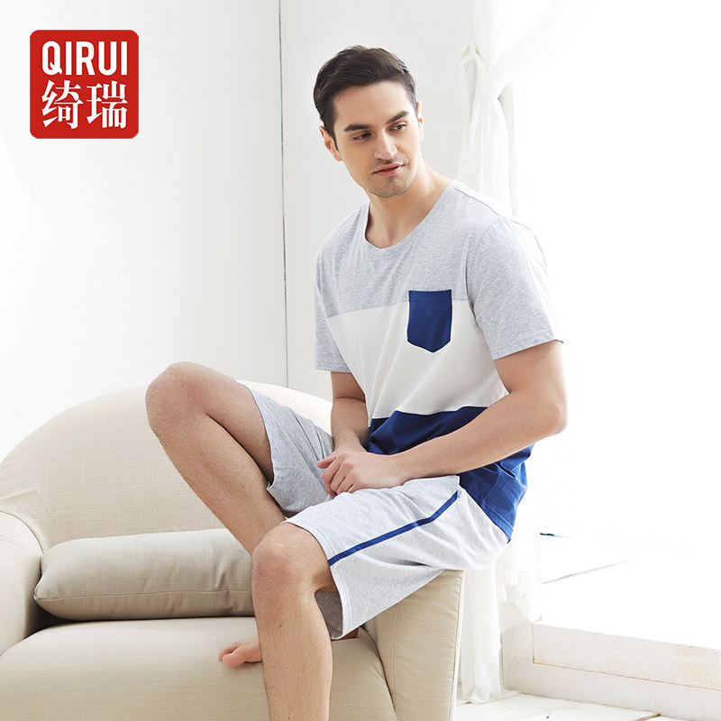 绮瑞绮瑞睡衣 夏季男士短袖拼接休闲简约套装可外穿家居服QH53811