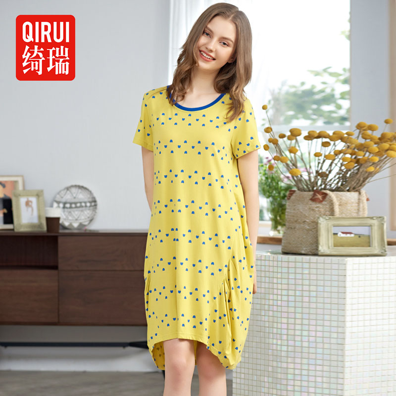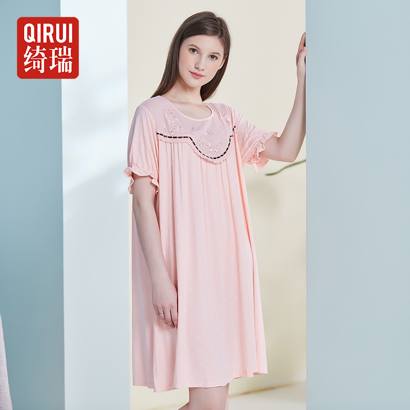 绮瑞绮瑞睡衣女士夏季莫代尔睡裙短袖休闲甜美宽松大码女夏中裙家居服QJ25671