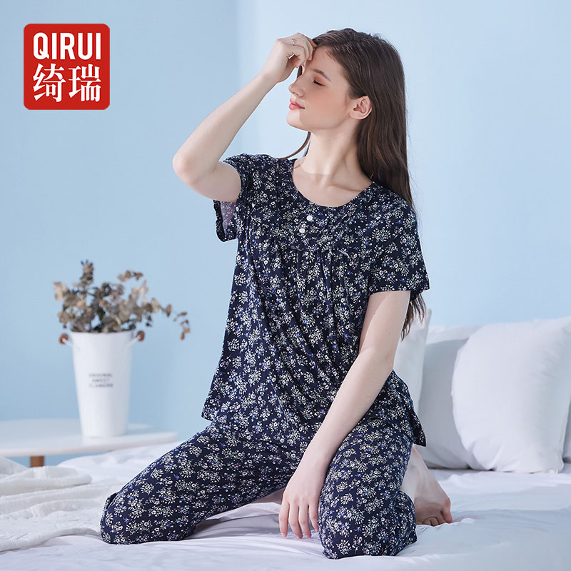 绮瑞绮瑞睡衣女士夏季薄款莫代尔棉绸两件套大码夏天短袖七分裤家居服QK25644