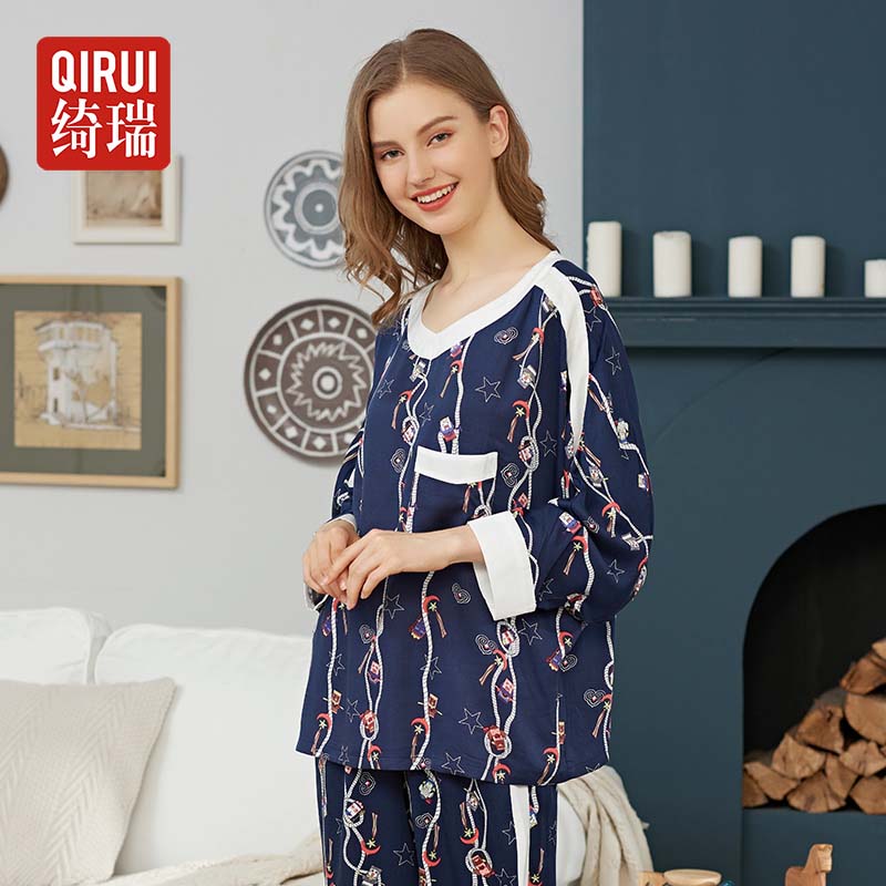绮瑞春秋简约舒适优雅女士家居服套装QR29283