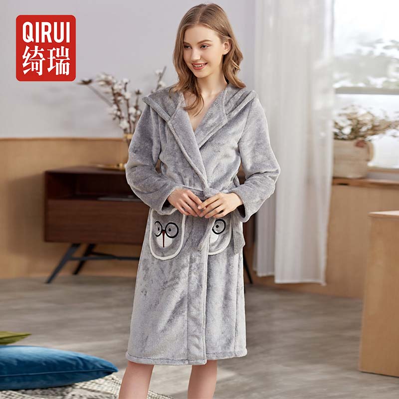 琦瑞法兰绒细带浴袍女秋冬加厚时尚休闲睡衣绮瑞睡袍冬QJ46554