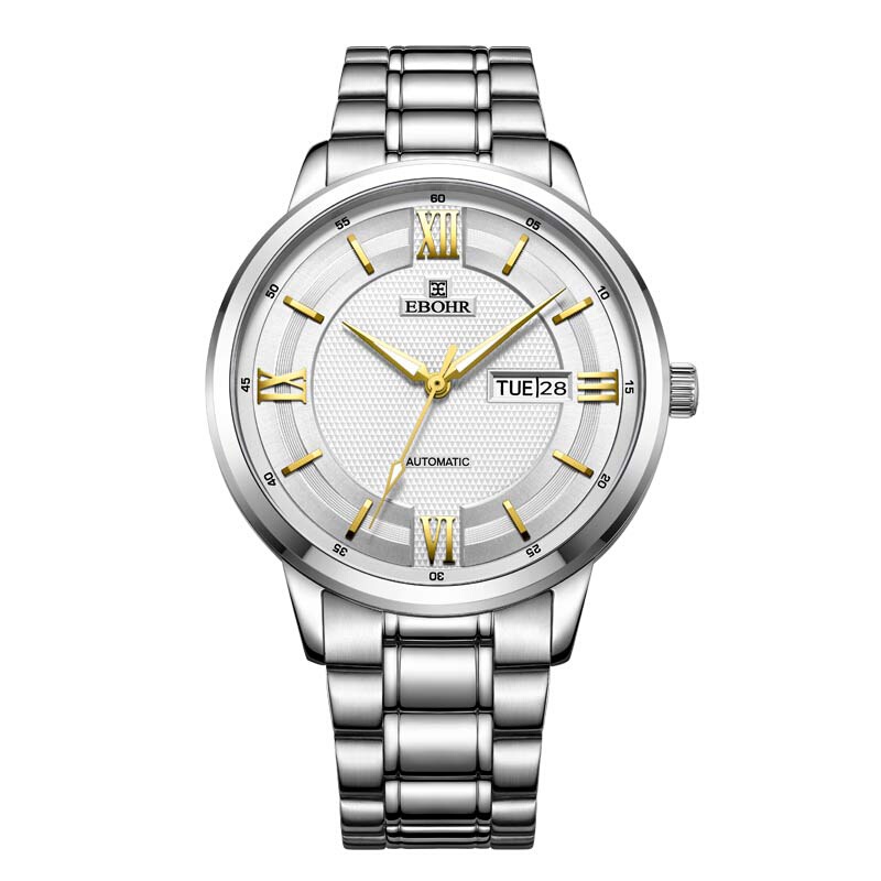 依波(EBOHR)手表 斯塔克系列NCT纳米耐磨白面钢带防水机械男表36250110