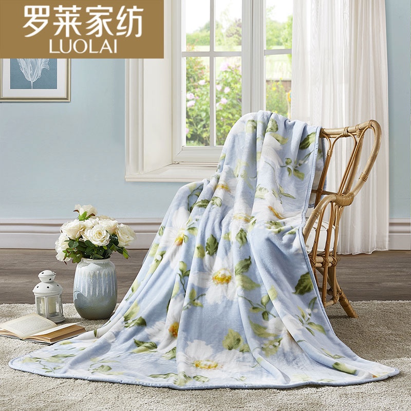 罗莱家纺 盛世花开法兰绒毯蓝色 150*180cm