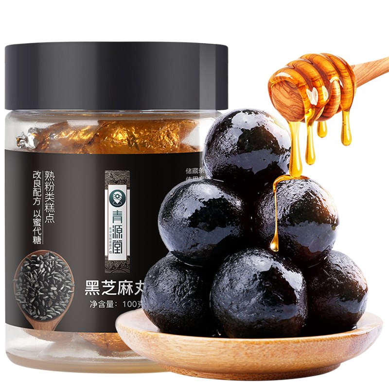 青源堂 黑芝麻丸 蜜制芝麻丸子即食零食 黑芝麻黑豆黑米 比九蒸九晒工艺更现代黑滋麻丸 芝麻丸100g/瓶*3瓶