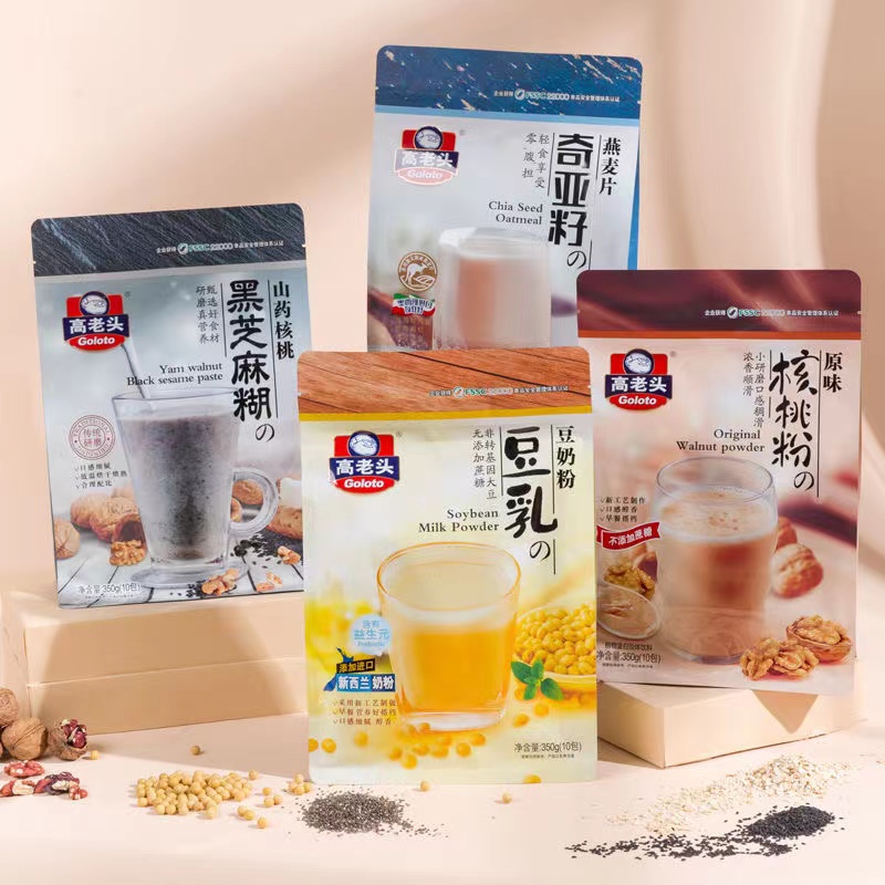 高老头350g山药芝麻+350g豆乳豆奶+350g奇亚籽麦片+350g原味核桃粉