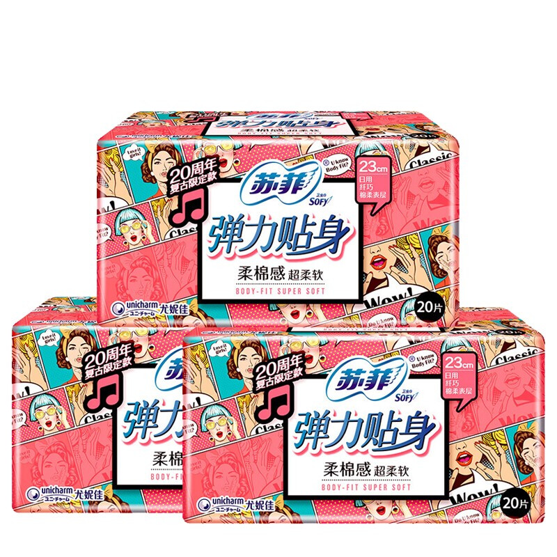 【特价】苏菲Sofy弹力贴身棉柔日用卫生巾230mm 20片*3包(2023年3月到期)