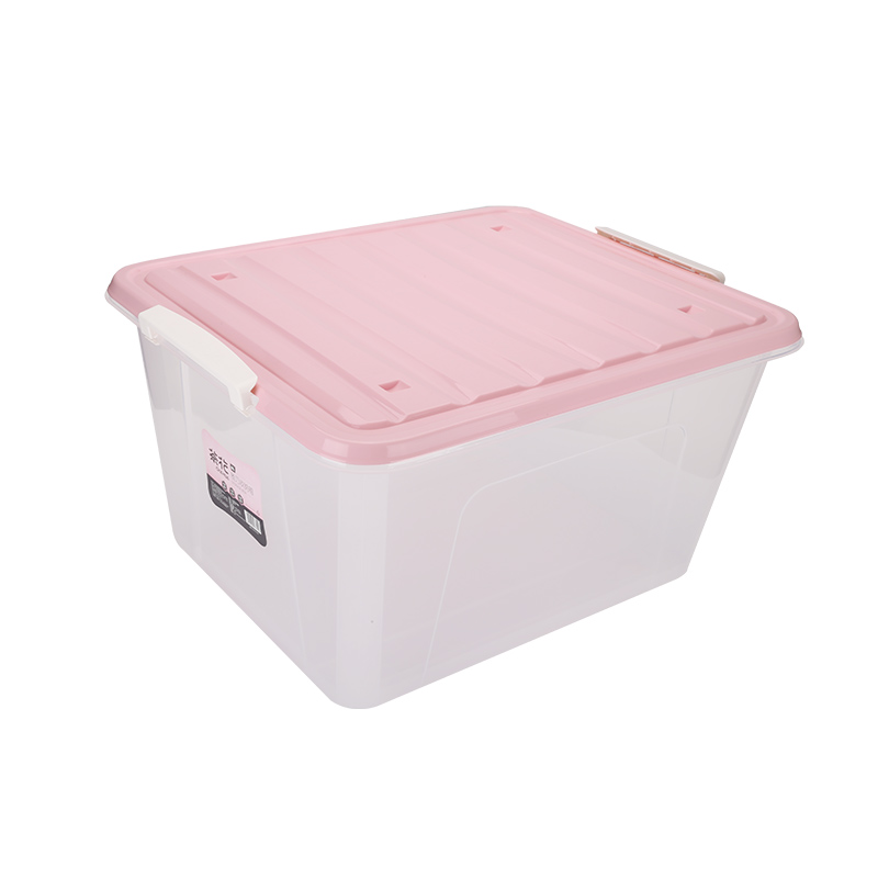 茶花 CHAHUA 雅巧透明收纳箱 B28002 86L 66.3*51.8*36.5cm (体透明,盖子:蓝色,粉红色、灰黄色、浅蓝色) 8个/箱 (有轮)