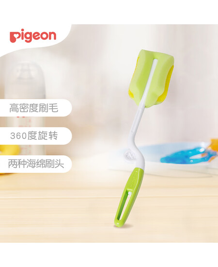 贝亲(Pigeon)杯刷 海绵奶瓶刷 360度旋转 奶瓶清洁 日本进口 04039