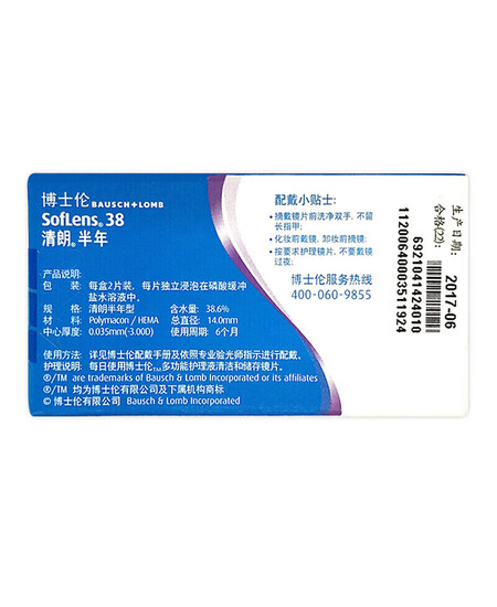 博士伦原装进口半年清朗半年抛隐形眼镜 2片装 375度