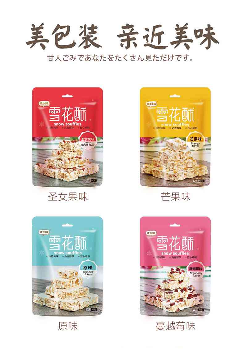 骑士小明雪花酥90g*4包 原味、圣女果味、蔓越莓味、芒果味网红雪花酥零食办公休闲