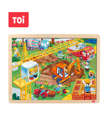 TOI儿童故事拼图玩具幼儿早教木质拼图拼板男女孩礼物 100片建筑工地